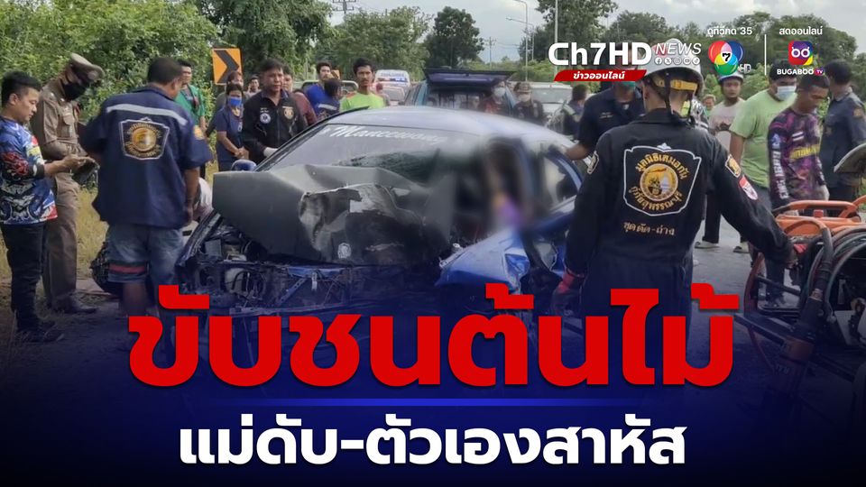 หนุ่มขับเก๋งพาแม่ไปไหว้พระ ขากลับเสียหลักชนต้นไม้ แม่ดับ-ตัวเองสาหัส ในรถพบยาบ้า 5 เม็ด