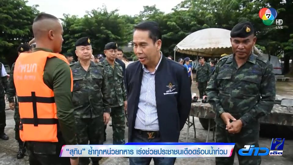 ข่าวเด็ด 7 สี - นายสุทิน คลังแสง รัฐมนตรีว่าการกระทรวงกลาโหม เปิดเผย หลังลงพื้นที่ติดตามการช่วยเหลือประชาชนจากน้ำท่วมของกองทัพบกในพื้นที่ภาคอีสานวานนี้ว่า เบื้องต้นได้สั่งการให้หน่วยทหารในแต่ละพื้นที่ ทั้งแพทย์ทหาร และกาลังพลชุดบรรเทาสาธารณภัย เร่งเข้าช่วยเหลือประชาชนที่ได้รับความเดือดร้อนอย่างเร่งด่วนในทุกพื้นที่ที่ประสบภัย เพื่อแก้ปัญหาความเดือดร้อนในขั้นต้น