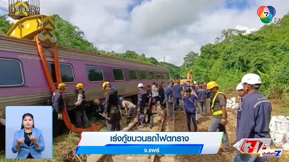 เจาะประเด็นข่าว 7HD - เจ้าหน้าที่การรถไฟฯ ยังเร่งกู้ขบวนรถไฟตกรางที่จังหวัดแพร่ พร้อมทั้งเร่งซ่อมทางที่ได้รับความเสียหาย เพื่อให้เปิดเดินรถไฟสายเหนือได้ตามปกติ ภายในช่วงเย็นวันนี้ ขณะที่สถานการณ์น้ำท่วมหลายพื้นที่ก็ยังน่าเป็นห่วง