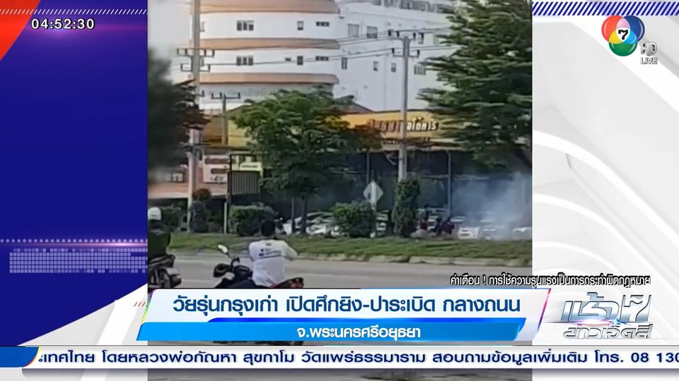 เช้าข่าว 7 สี - ชาวจังหวัดพระนครศรีอยุธยา ร้องขอตำรวจ และหน่วยงานที่เกี่ยวข้อง เร่งแก้ปัญหานักเรียน-นักเลง หลังกลุ่มวัยรุ่นเลือดร้อน เปิดศึกยิงปืนและปาระเบิดใส่กัน กลางถนนโรจนะ