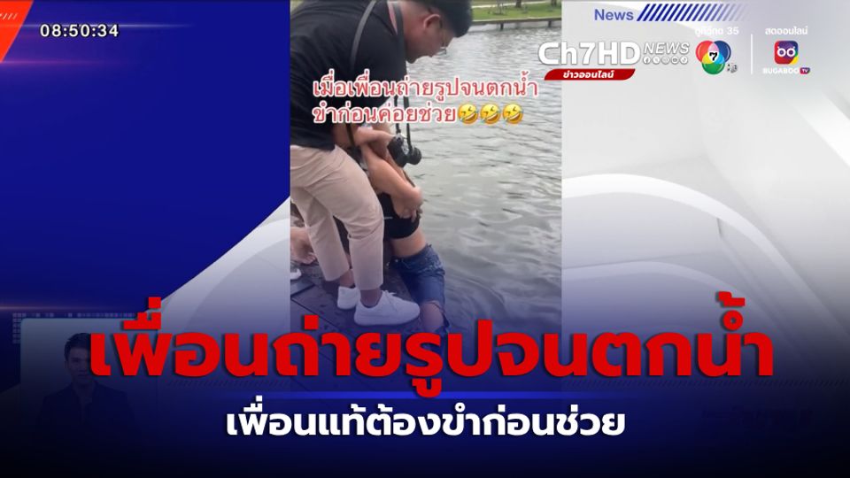 ผู้ใช้ TikTok รายนี้โพสต์คลิปขณะที่ หญิงสาวคนหนึ่ง ตกน้ำแล้ว เพื่อน ๆ ต่างหัวเราะชอบใจแล้ว จึงเข้าไปช่วยดึงขึ้นมา เรื่องมันเกิดขึ้น เพราะว่าตั้งใจจะถ่ายรูปให้สวยถอยหลังไปมา จนตกน้ำ