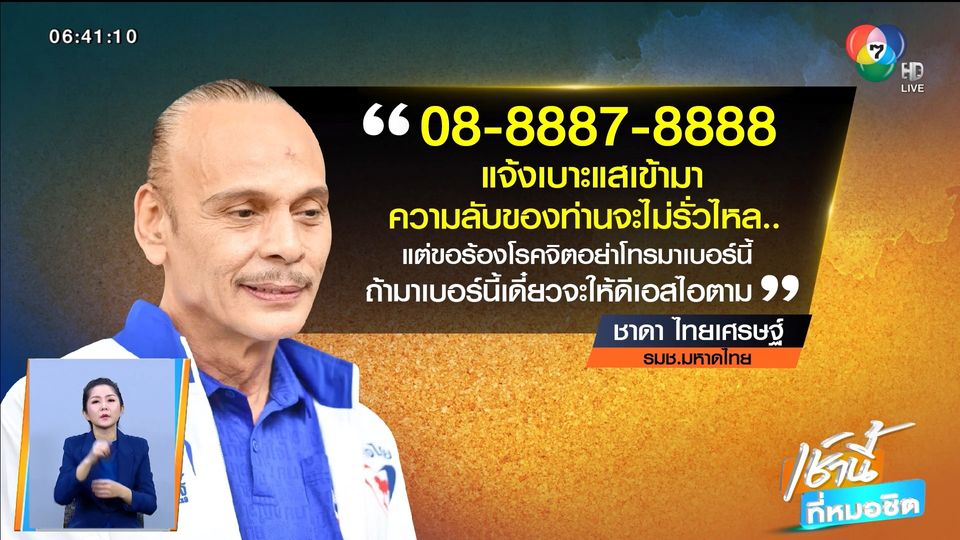 ชาดา ลั่น มาเฟียอยู่ไม่สุขแน่ แจกเบอร์ส่วนตัวให้ ปชช.แจ้งเบาะแส
