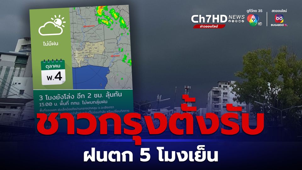 ฝนตกหนัก วันนี้ (4 ต.ค.66) กรุงเทพมหานครเปิดเผยเรดาร์อากาศ เมื่อเวลา 15.00 น. กรุงเทพฯ ยังไม่พบกลุ่มฝน ขณะที่พื้นที่รอบนอก กทม. มีฝนตกเล็กน้อยถึงปานกลางปกคลุม จ.ฉะเชิงเทรา กลุ่มฝนเคลื่อนตัวทิศตะวันตก คาดว่าถ้ากลุ่มฝนไม่อ่อนกำลังหรือเปลี่ยนทิศทางจะเคลื่อนเข้าปกคุลุม กทม. ภายใน 2 ชม. ข้างหน้า หรือประมาณเวลา 17.00 น.