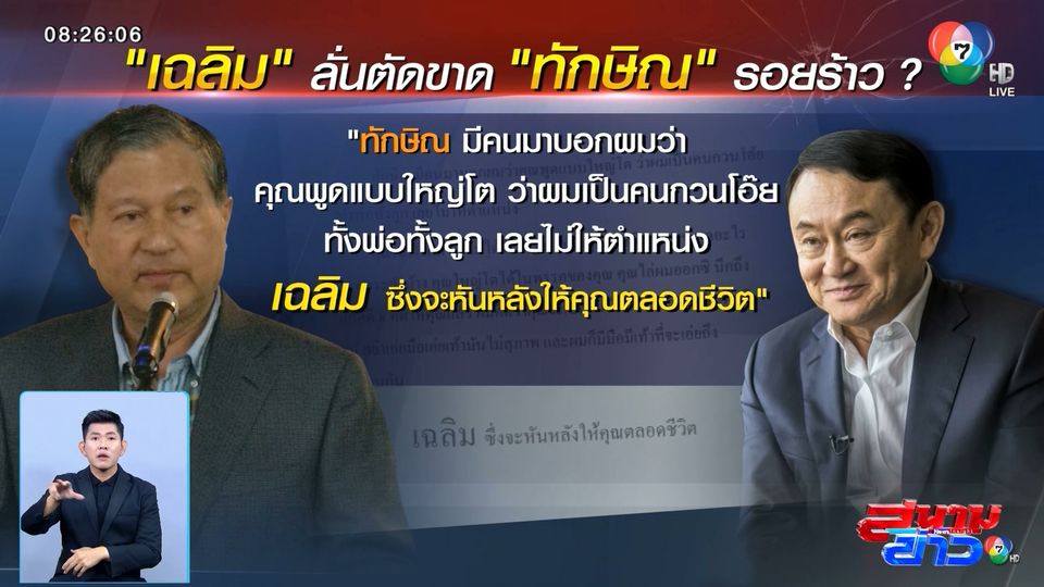 สนามข่าว 7 สี - เป็นประเด็นร้อนภายในพรรคเพื่อไทย หลังร้อยตำรวจเอก เฉลิม อยู่บำรุง สส.พรรคเพื่อไทย ประกาศดังชัด ๆ ตัดขาด ทักษิณ ชินวัตร ลั่นไม่มีอะไรต้องพูดกันอีก ขณะที่ลูกชาย นายวัน อยู่บำรุง ไลฟ์ยืนยันไม่เคยพูดกวนโอ๊ยใคร