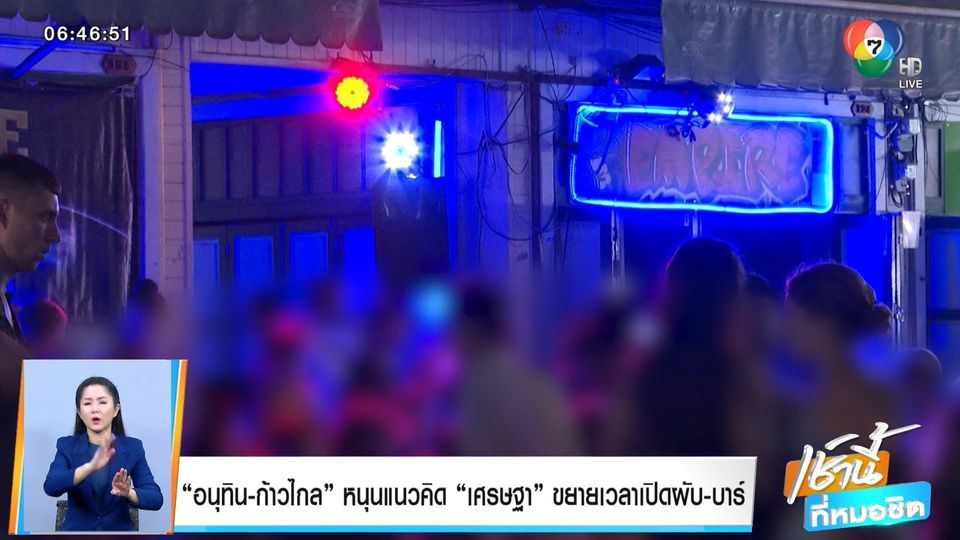 หลัง นายเศรษฐา ทวีสิน นายกรัฐมนตรี และรัฐมนตรีว่าการกระทรวงการคลัง มีแนวคิดว่าควรขยายเวลาเปิดปิดผับบาร์ จากเดิมปิดตีหนึ่ง ให้ขยายออกไปเพื่อสนับสนุนการท่องเที่ยว อีกทั้งยังมองว่าการปิดผับบาร์ตีหนึ่ง ก็เหมือนหลอกตัวเอง หรือเป็นสังคมอีแอบ เพราะถึงมีกฎหมาย แต่ก็ยังมีการเล็ดลอดเปิดอยู่