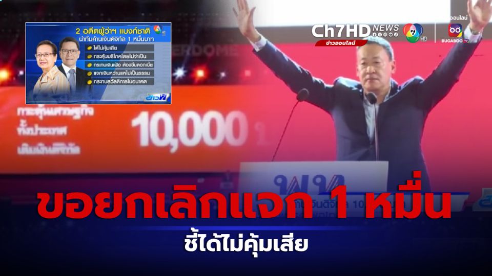 ข่าวภาคค่ำ - 2 อดีตผู้ว่าแบงก์ชาติ ร่วม นักวิชาการด้านเศรษฐศาสตร์ ลงชื่อเรียกร้องให้รัฐบาลยกเลิกนโยบายแจกเงินดิจิทัล 10,000 บาท ชี้ได้ไม่คุ้มเสีย