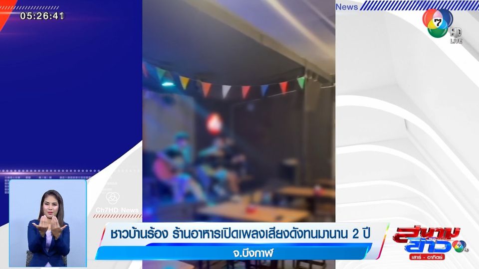สนามข่าวเสาร์-อาทิตย์ - สนามข่าวช่วยชาวบ้าน มาดูปัญหานี้ ชาวบ้านที่อำเภอปากคาดร้องเรียนมาว่า ไม่ไหวแล้ว ร้านอาหารเปิดเพลงเสียงดังสนั่นกลางดึก แทบนอนไม่ได้ ทนมานานถึง 2 ปี แล้ว
