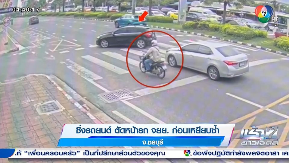 เช้าข่าว 7 สี - รถยนต์คันหนึ่งขับอยู่ในเลนขวาสุด แต่กลับหักเลี้ยวซ้ายเข้าซอย ทำให้รถจักรยานยนต์ที่ขี่มาทางตรงประสบอุบัติเหตุ ก่อนที่รถยนต์จะเหยียบคันเร่ง ทับตัวคนขี่รถจักรยานยนต์ซ้ำ