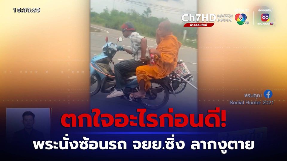 ข่าวเย็นประเด็นร้อน - หนุ่มสุดงง เจอชายซิ่งรถจักรยานยนต์ โดยมีหลวงพ่อซ้อนท้าย ที่น่าตกใจคือ ท้ายรถมีเชือกลากงูเหลือมตัวใหญ่ แถมในท้องงูมีซากไก่อยู่ด้วย