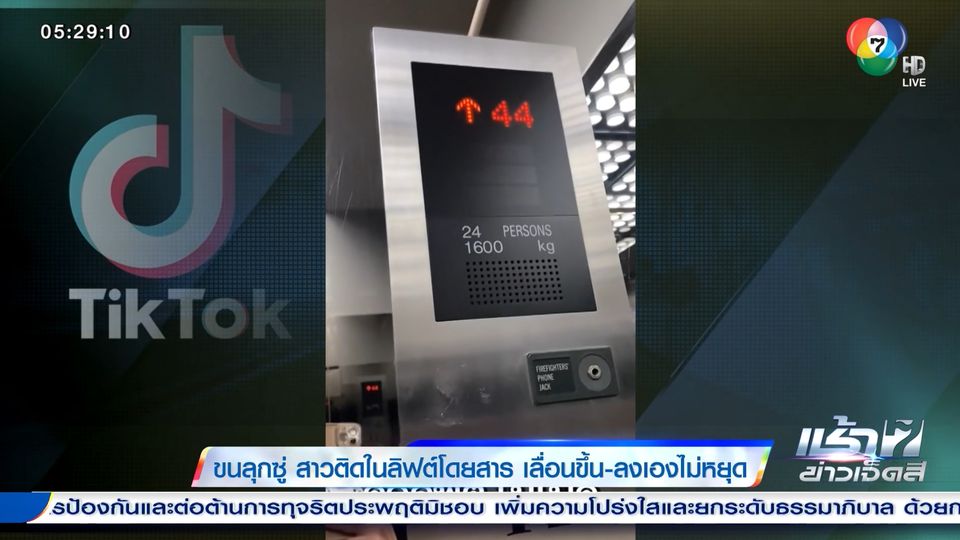 เช้าข่าว 7 สี - ส่วนเหตุการณ์นี้ทำเอาคนดูคลิปหลอนกันจนขนลุก เมื่อหญิงคนหนึ่งขึ้นลิฟต์โดยสารมาคนเดียว จากนั้นลิฟต์ค้าง แต่ประตูไม่เปิด ลิฟต์กลับเลื่อนขึ้น-ลงไปชั้นต่าง ๆ ก่อนที่จะไปโผล่ที่ชั้นไหน