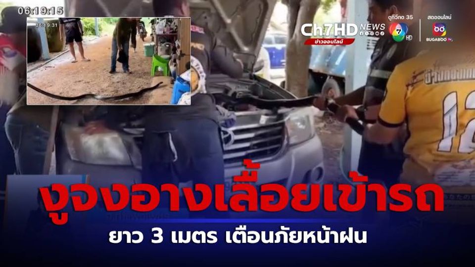 จับงูจงอางยาว 3 เมตรเลื้อยเข้ากระโปรงรถ จ.กำแพงเพชร