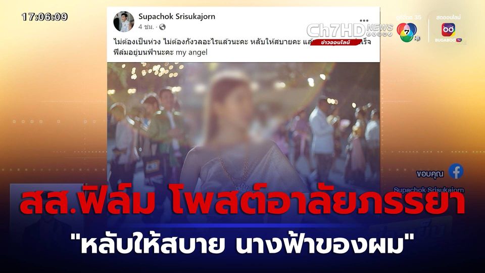 ขณะที่ เฟซบุ๊ก "Supachok Srisukajorn" ของนายศุภโชค โพสต์ภาพและข้อความระบุว่า "ไม่ต้องเป็นห่วง ไม่ต้องกังวลอะไรแล้ว หลับให้สบาย แล้วคอยดูความสำเร็จฟิล์มอยู่บนฟ้า my angel"