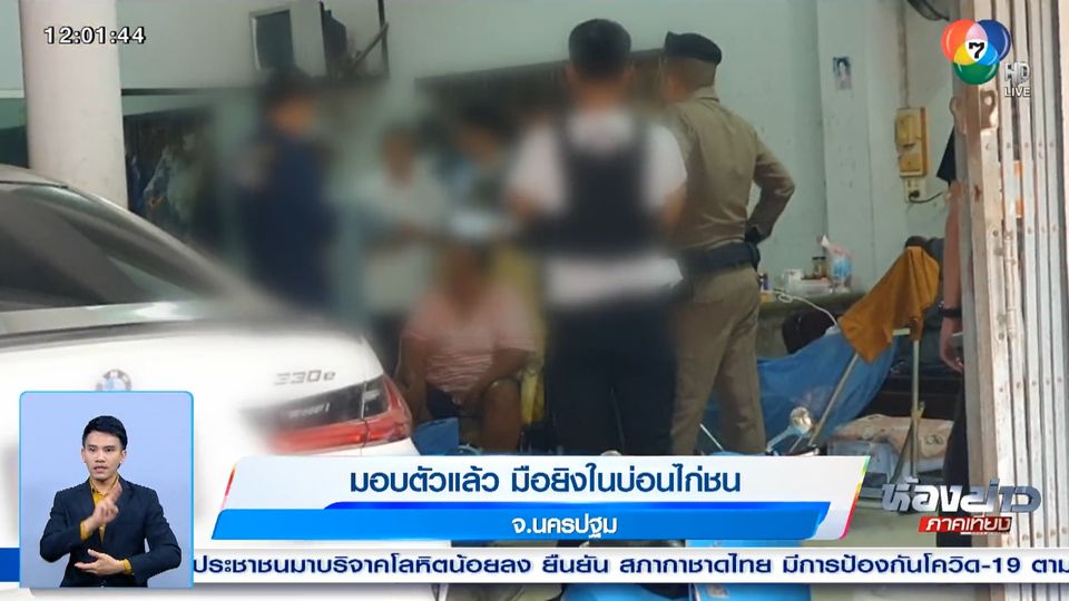 ห้องข่าวภาคเที่ยง - ผู้ต้องหามือยิงเซียนไก่ชนเสียชีวิตคาสนามชนไก่จังหวัดนครปฐม ยอมมอบตัวกับตำรวจแล้วเมื่อคืนนี้