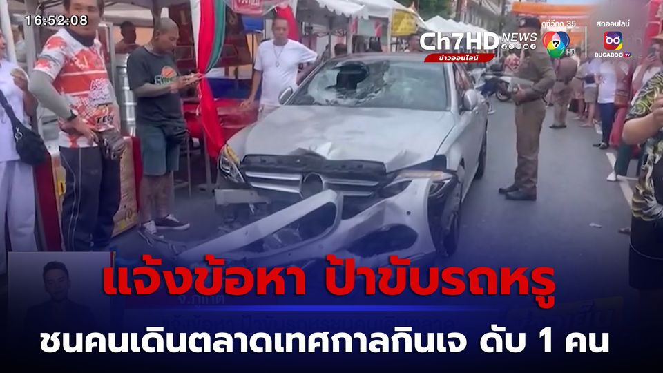 ข่าวเย็นประเด็นร้อน - กรณีอุบัติเหตุหญิงอายุ 62 ปี เป็นภรรยาอดีตตำรวจ ขับรถเบนซ์พุ่งชนคนเดินตลาดเทศกาลกินเจ จังหวัดภูเก็ต มีคนเจ็บถึง 10 คน และเสียชีวิต 1 คน ล่าสุดตำรวจแจ้งข้อหาหญิงคนขับแล้ว