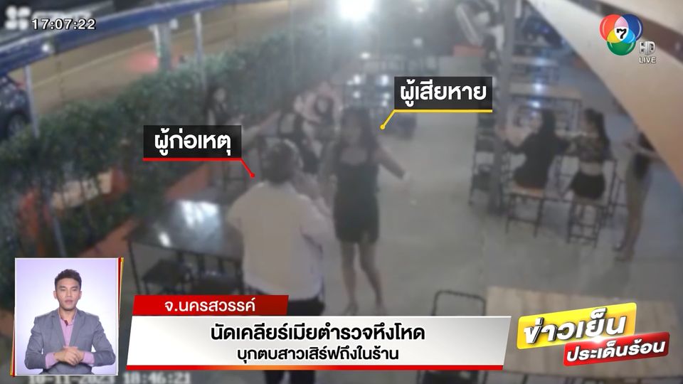 ข่าวเย็นประเด็นร้อน - ภรรยาตำรวจ ที่บุกตบสาวเสิร์ฟถึงในร้านอาหาร พาสามีขึ้นโรงพัก เจรจาไกล่เกลี่ยกับผู้เสียหาย เจรจายอมรับผิด จ่ายค่าทำขวัญและยกมือไหว้ขอโทษที่เข้าใจผิด