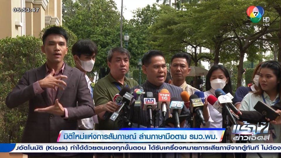 เช้าข่าว 7 สี - มิติใหม่แห่งการให้สัมภาษณ์ เป็นที่ถูกอกถูกใจผู้พิการ ล่าสุด รัฐมนตรีว่าการกระทรวงการพัฒนาสังคมและความมั่นคงของมนุษย์ ควงลามภาษามือให้สัมภาษณ์สื่อ เจอได้ทุกงาน เพื่อการรับรู้ข่าวสารที่เท่าเทียม