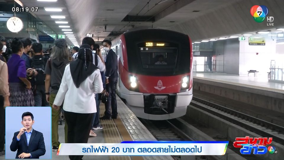 สนามข่าว 7 สี - ผู้ใช้บริการรถไฟฟ้าสายสีแดง และสายสีม่วง ยิ้มได้ หลังรัฐบาลปรับลดค่าโดยสารเหลือ 20 บาทตลอดสาย แต่ไม่ตลอดไป เพราะกำหนดสิ้นสุดในเดือนพฤศจิกายน ปี 2567