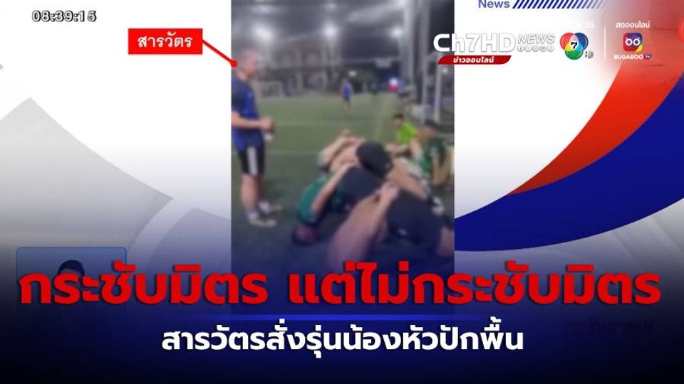 สนามข่าว 7 สี - มาดูเหตุการณ์แข่งบอลกระชับมิตร แต่ไม่กระชับมิตร เกิดปะทะในสนามฟุตบอล ไม่พอใจเลยสั่งให้ลงโทษ สารวัตรสั่งลงโทษรุ่นน้องหัวปักพื้น นับ 100 ครั้ง