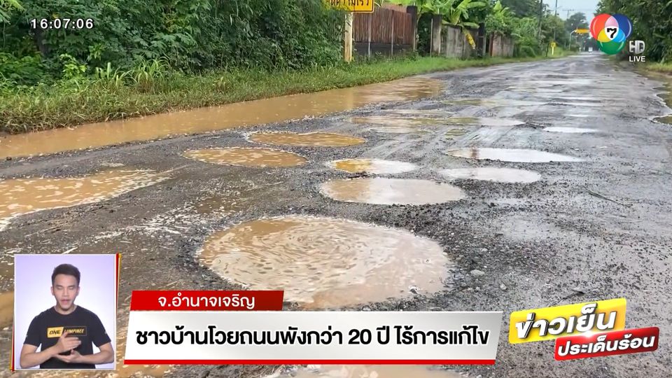 ข่าวเย็นประเด็นร้อน - ที่จังหวัดอำนาจเจริญ ชาวบ้านโวย ถนนระยะทางกว่า 10 กิโลเมตรที่ใช้กัน 5 หมู่บ้าน พังเสียหายหนักมานาน 20 ปี จากถนนลาดยางกลายเป็นถนนลูกรัง และยังเกิดอุบัติเหตุบ่อยครั้ง