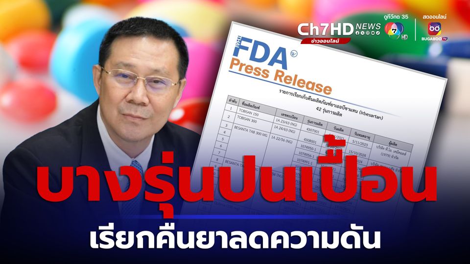วันนี้ (20 ต.ค.66) นพ.ณรงค์ อภิกุลวณิช รักษาราชการแทนเลขาธิการคณะกรรมการอาหารและยา (อย.) เปิดเผยถึงกรณีที่ต่างประเทศมีการเรียกคืนยารักษาโรคความดันโลหิตสูงเออบีซาแทน (Irbesartan) จากบริษัทผู้ผลิต เนื่องจากพบการปนเปื้อนสารที่อาจก่อมะเร็งเอแซดบีที (AZBT) ในวัตถุดิบที่ใช้ผลิตยา อย. จึงเร่งให้ผู้ผลิตตรวจสอบและเปลี่ยนไปใช้วัตถุดิบที่ไม่มีการปนเปื้อน ควบคู่ไปกับการตรวจสอบเฝ้าระวังผลิตภัณฑ์ยาที่จำหน่ายในท้องตลาด