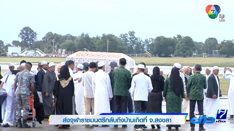 ข่าวเด็ด 7 สี - ร่างของนายอาศิส พิทักษ์คุมพล จุฬาราชมนตรี เดินทางไปถึงท่าอากาศยานกองบิน 56 ตำบลคลองหลา อำเภอคลองหอยโข่ง จังหวัดสงขลา ด้วยเครื่องบินกองทัพอากาศ โดยมี นายสมนึก พรหมเขียว ผู้ว่าราชการจังหวัดสงขลา และข่าราชการไปรอรับ