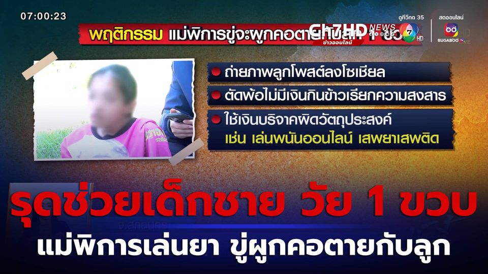 เช้านี้ที่หมอชิต - เจ้าหน้าที่ พม.จังหวัดสกลนคร รุดช่วยเด็กชาย วัย 1 ขวบ ถูกแม่พิการไลฟ์สดขู่จะผูกคอตายพร้อมกัน
