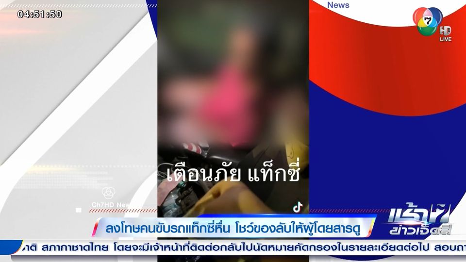 เช้าข่าว 7 สี - กรมการขนส่งทางบก เรียกโชเฟอร์แท็กซี่หื่น รายงานตัว และปรับ 5,000 บาท ฐานกระทำการอันควรขายหน้าต่อหน้าธารกำนัล พร้อมขึ้นทะเบียนเป็นผู้เคยกระทำผิด หากผิดซ้ำจะลงโทษขั้นเด็ดขาด