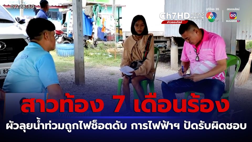 เช้านี้ที่หมอชิต - หญิงตั้งครรภ์ 7 เดือน กลายเป็นแม่เลี้ยงเดี่ยว หลังสามีเดินลุยน้ำท่วมเข้าบ้านขณะฝนตก แล้วถูกไฟฟ้าช็อตเสียชีวิต