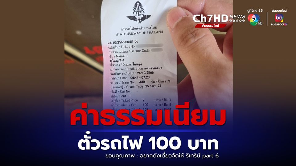 หนุ่มโวยถูกพนักงานการรถไฟฯ เรียกเก็บค่าธรรมเนียม 100 บาท เพราะซื้อตั๋วที่สถานีไม่ทัน ล่าสุดออกมาขอโทษชี้แจงแล้ว