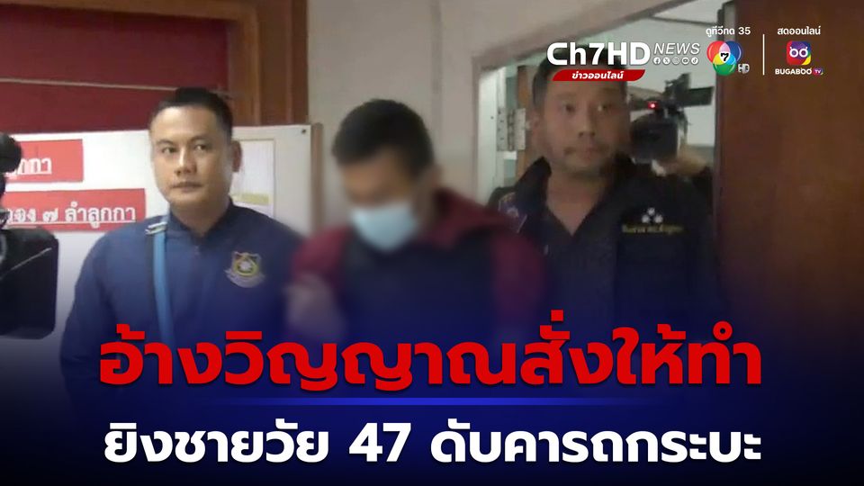 หนุ่มวัย 23 ปี ขี่รถจักรยานยนต์ยิงชายวัย 47 ปี ดับคารถกระบะ ก่อนหนีไปซ่อนตัวกลางทุ่งนา สุดท้ายถูกเจ้าหน้าที่ตามรวบสำเร็จ เจ้าตัวอ้าง “วิญญาณที่ซ้อนท้ายรถจักรยานยนต์สั่งให้ทำ”