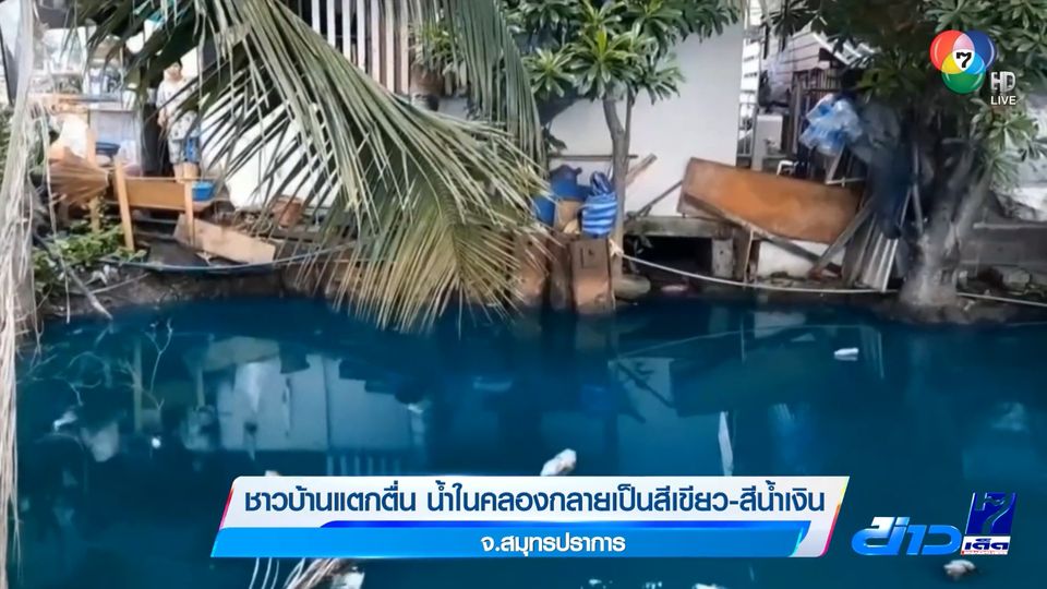 ข่าวเด็ด 7 สี - ที่ชุมชนคลองท้ายเมือง อำเภอพระประแดง จังหวัดสมุทรปราการ ชาวบ้านพากันแตกตื่น เนื่องจากน้ำในคลองบางจุดเปลี่ยนเป็นสีเขียวมรกต ขณะที่บางจุดกลายเป็นสีน้ำเงิน ต่อเนื่องประมาณ 3 วันแล้ว จึงหวั่นเกิดอันตราย หากมีสารเคมีปนเปื้อน และไหลออกสู่แม่น้ำเจ้าพระยา