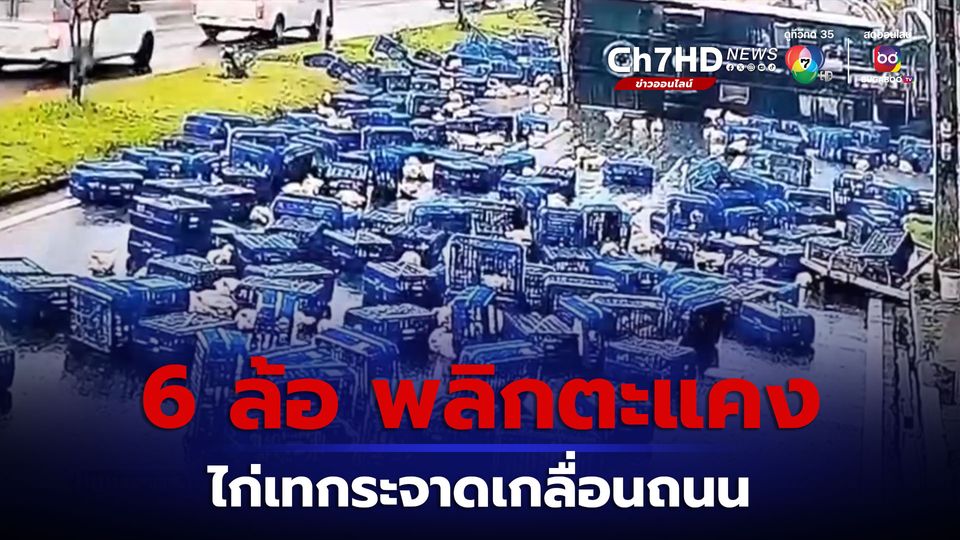 วันนี้ ( 1 พ.ย. 66) กล้องวงจรปิดจับภาพเหตุการณ์ขณะเกิดอุบัติเหตุรถบรรทุก 6 ล้อ ซึ่งบรรทุกไก่เป็นๆ มาเต็มคันรถหลายร้อยลังเสียหลักพลิกตะแคง ลื่นไถลกลางถนน ไก่ที่บรรทุกมาเทกระจาดกระจายเกลื่อนถนน โดยมีไก่บางส่วนกระเด็นหลุดออกมาจากลัง บางตัวก็ตาย บางตัวก็รอด บางตัวก็ยังติดอยู่ในลัง