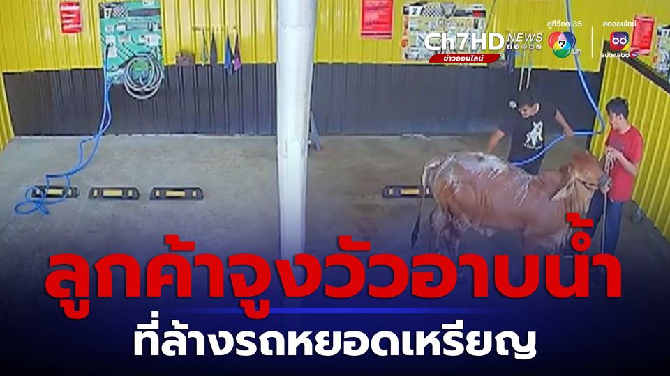 ข่าวเย็นประเด็นร้อน - ปกติแล้วเวลาเราอาบน้ำให้วัว ก็จะพาไปที่ทุ่งที่นา แต่วันนี้ ทันสมัยแล้ว พาเข้าร้านล้างรถหยอดเหรียญ