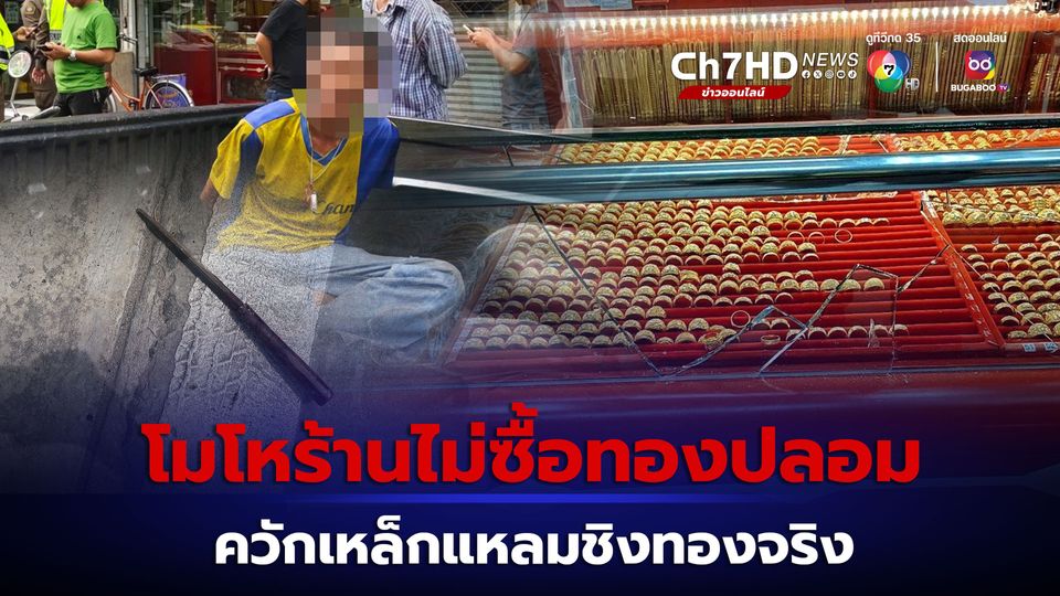 ชายนำทองปลอมไปหลอกขาย แต่ร้านทองปฏิเสธรับซื้อ และไม่ให้เงิน 20 บาท ก่อนคลุ้มคลั่งใช้เหล็กแหลมทุบกระจกชิงทอง สุดท้ายหนีไปรอด ถูกตำรวจรวบตัวได้ทันควัน