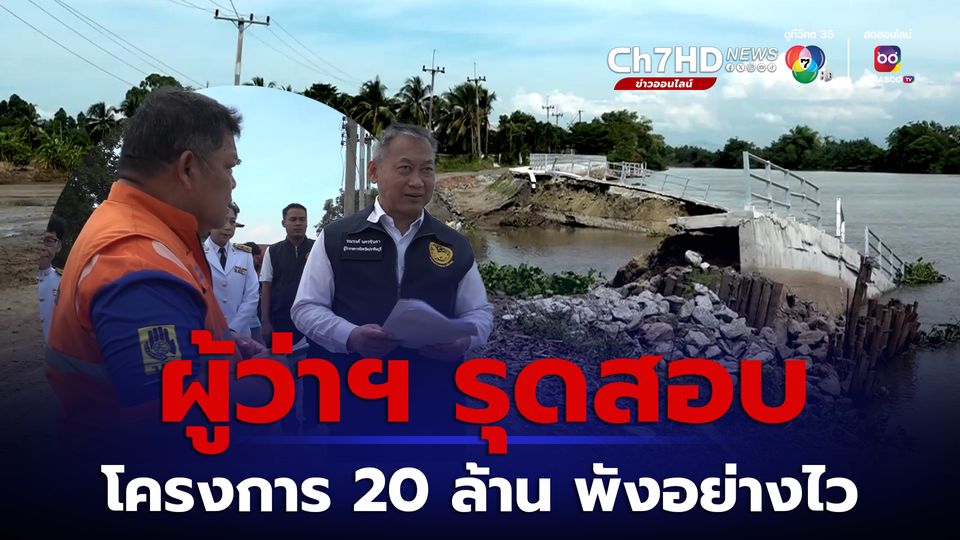ผู้ว่าฯปราจีน ลงพื้นที่ตรวจสอบ เร่งหาสาเหตุแนวเขื่อนป้องกันตลิ่งทรุดตัวพังลงแม่น้ำ วงเงินก่อสร้าง 20 ล้าน เพิ่งสร้างเสร็จส่งมอบงานเพียง 3 เดือน
