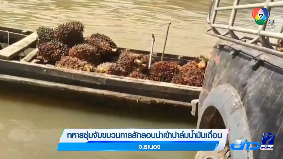 ข่าวเด็ด 7 สี - ทหารเข้าจับกุมขบวนการลักลอบนำเข้าปาล์มน้ำมันเถื่อน ริมฝั่งต้นแม่น้ำกระบุรี จังหวัดระนอง
