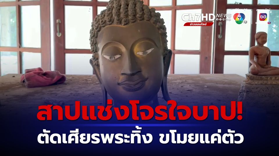 ล่าโจรบาปตัดเศียรพระพุทธรูปอายุร่วม 100 ปี ทิ้งไว้ให้ดูต่างหน้า ยกไปแค่ลำตัวทองเหลืองไป นอกจากนี้ยังตัดแขนพระพุทธรูปอีก 2 องค์ และขโมยประตูไม้กสลักอีก 4 บาน ชาวบ้านต่างสาปแช่งให้ตกนรก