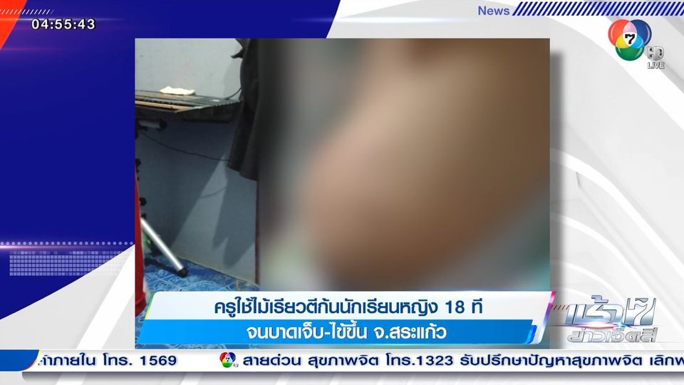 ที่จังหวัดสระแก้ว นักเรียนหญิงชั้น ป.6 ถูกครูใช้ไม้เรียวตีก้น จำนวน 18 ที จนบาดเจ็บและป่วยเป็นไข้ สาเหตุเพราะไม่ส่งการบ้าน