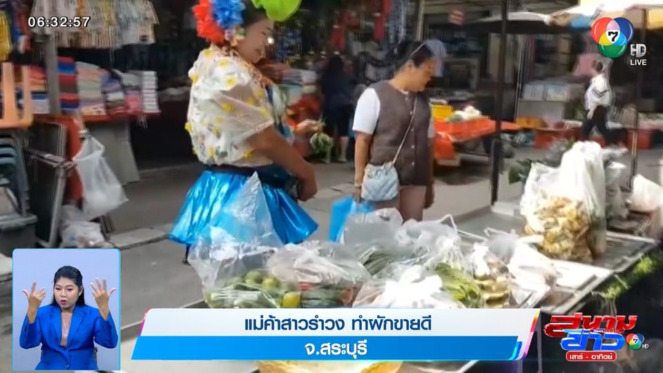 ลีลาไม่ธรรมดา กับแม่ค้าสาวรำวง ขายผักอยู่ในตลาด ลุกขึ้นมาเต้นเรียกลูกค้า สร้างสีสัน