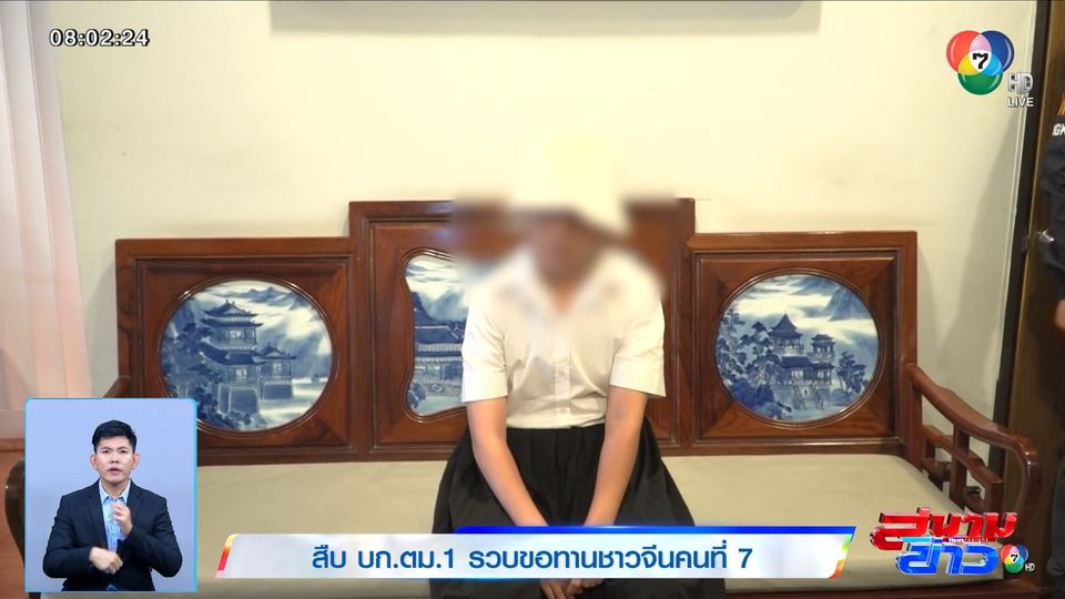 คุณเจมส์ ฉัตรชัย ทีมข่าวช่อง 7HD ของเรา เพียงช่องเดียวเท่านั้นได้ลงพื้นที่ไปกับตำรวจกองกำกับการสืบสวน กองบังคับการตรวจคนเข้าเมือง 1 ที่ควบคุมตัว นางฮู อายุ 28 ปี ชาวจีน ซึ่งเป็นคนที่ 7 ของแก๊งขอทานชาวจีน ถูกจับกุมขณะขอทานอยู่ที่บริเวณสถานีรถไฟฟ้าศาลาแดง พร้อมของกลางเงินสดจำนวน 1,853 บาท เมื่อวันที่ 20 พฤศจิกายน เพื่อไปขยายผลหาตัวผู้บงการและผู้ร่วมขบวนการ โดยไปตรวจสอบที่โรงแรมแห่งหนึ่ง ย่านหัวลำโพง พบภาพกล้องวงจรปิดของโรงแรมมีผู้ต้องสงสัยเป็นชายชาวจีน 1 คน ให้การช่วยเหลือและสนับสนุนให้ นางฮู เข้ามาขอทาน ซึ่งตำรวจเร่งติดตามจับกุมชายต้องสงสัยดังกล่าวมาดำเนินคดี