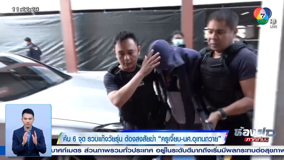 ห้องข่าวภาคเที่ยง - คดีวัยรุ่นก่อเหตุยิงนักศึกษา "อุเทนถวาย" และกระสุนพลาดไปถูก "ครูเจี๊ยบ" ถูกลูกหลงเสียชีวิต เช้าวันนี้ตำรวจสืบสวนนครบาลปูพรมค้น 6 จุด นำตัวผู้ต้องสงสัยไม่ต่ำกว่า 8 คน ไปสอบสวนเพื่อคัดแยกหาตัวผู้ก่อเหตุ และยังขยายผลไปพบซุ้มมือปืนในจังหวัดนนทบุรีด้วย