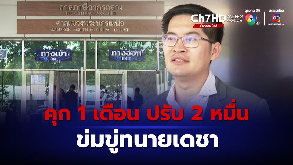 ศาลแขวงพระนครเหนือ สั่งจำคุก 1 เดือน ปรับ 2 หมื่นบาท "เต้ มงคลกิตติ์" ข่มขู่ทนายเดชา ปมการเสียชีวิตแตงโม แต่ไม่เคยจำคุกมาก่อน เห็นควรให้โอกาสกลับตัวเป็นพลเมืองดี ให้รอลงอาญา 1 ปี