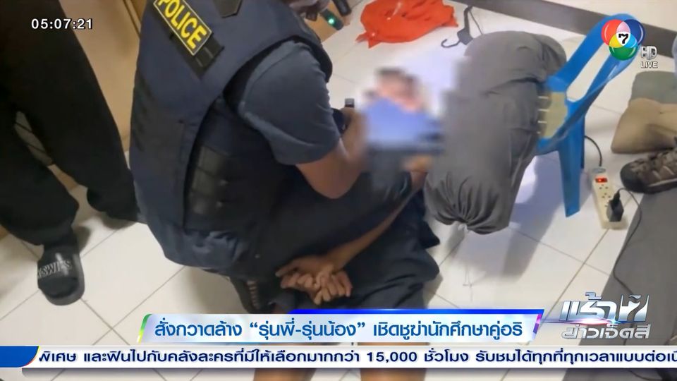 เช้าข่าว 7 สี - กลุ่มศิษย์เก่า รุ่นพี่ รุ่นน้อง 9 คน ที่ถูกตำรวจจับกุมตัว ถูกส่งตัวไปดำเนินคดีตามกฎหมายทั้งหมดแล้ว แต่ผู้ที่เข้าข่ายกระทำผิดไม่ได้มีเท่านี้ ยังมีคนที่อยู่ร่วมใน "องค์กรอาชญากรรมขนาดเล็ก" อีกมาก ที่ผู้บัญชาการตำรวจแห่งชาติ สั่งให้กวาดล้างจับกุมทั้งหมด