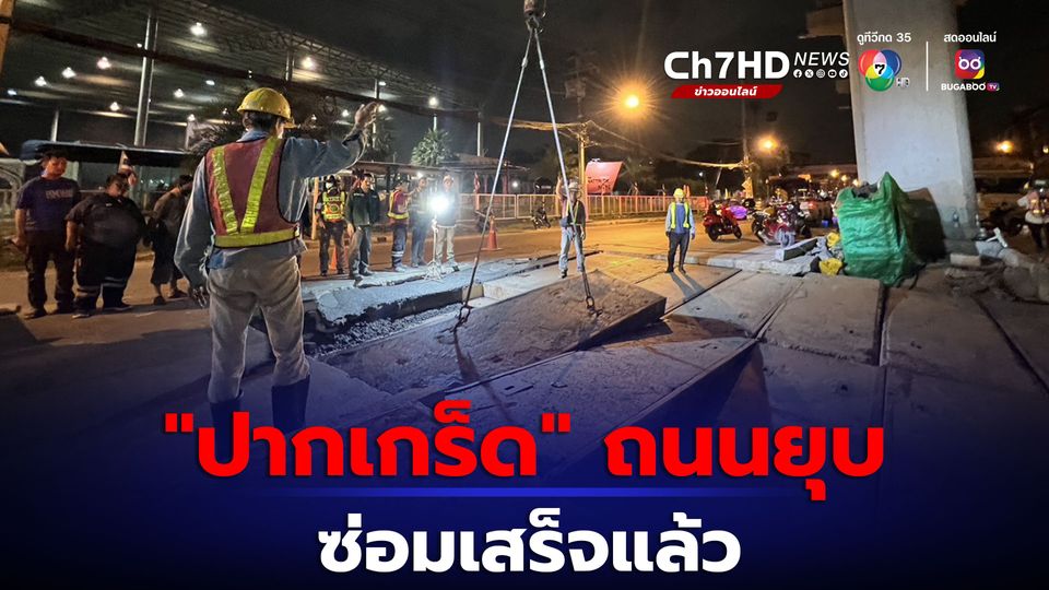 “ถนนติวานนท์” ยุบตัว ลึก 40 เซ็นติเมตร ยาว 11 เมตร เจ้าหน้าที่ ปิดอุโมงค์ห้าแยกปากเกร็ด ซ่อมทั้งคืน ก่อนเปิดการสัญจรได้ปกติเช้ามืดวันนี้ (24พ.ย.)