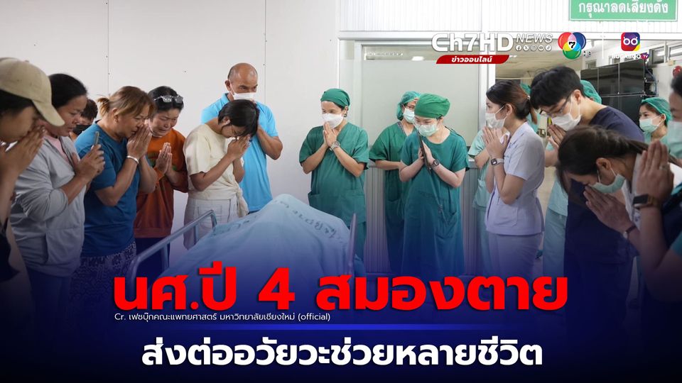 กุศลยิ่งใหญ่ นศ.ปี 4 ประสบอุบัติเหตุ อยู่ในภาวะ สมองตาย ญาติบริจาคอวัยวะตับ ไต 2 ข้าง ดวงตา และลิ้นหัวใจ ช่วยต่อลมหายใจเพื่อนมนุษย์หลายชีวิต