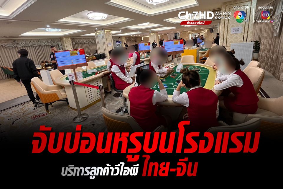ตม.จับบ่อนหรูบนโรงแรมย่านงามวงศ์วาน บริการลูกค้าวีไอพีไทย-จีน รวบนักพนันจีน 26 คน พนักงานคนไทย 23 คน ยึดเครื่องเล่น-เงินสดกว่า 3.5 ล้านบาท ขยายผลตามล่าเจ้าของบ่อนดำเนินคดี