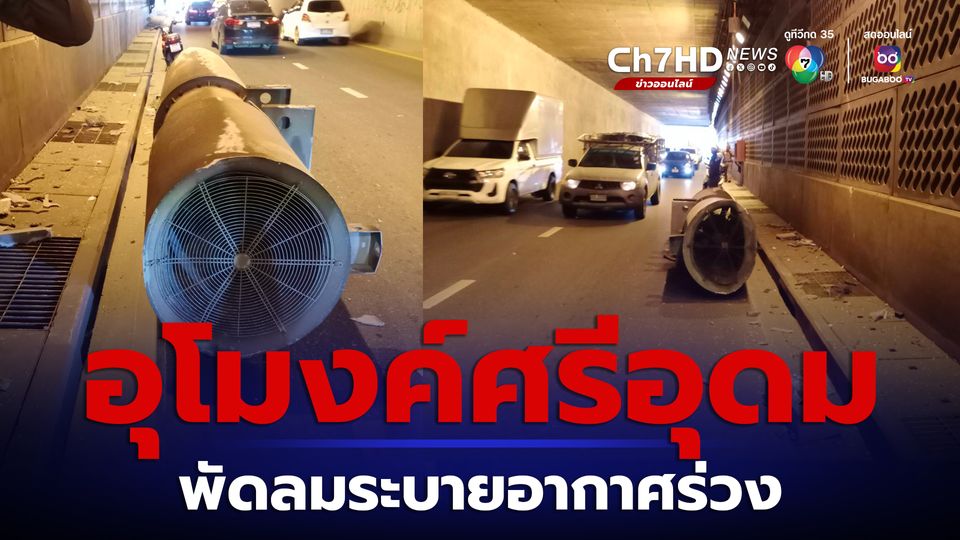 หลีกเลี่ยงเส้นทาง-เพิ่มความระมัดระวัง อุโมงค์ทางลอดแยกศรีอุดม พัดลมระบายอากาศร่วงกีดขวางช่องทางการจราจร
