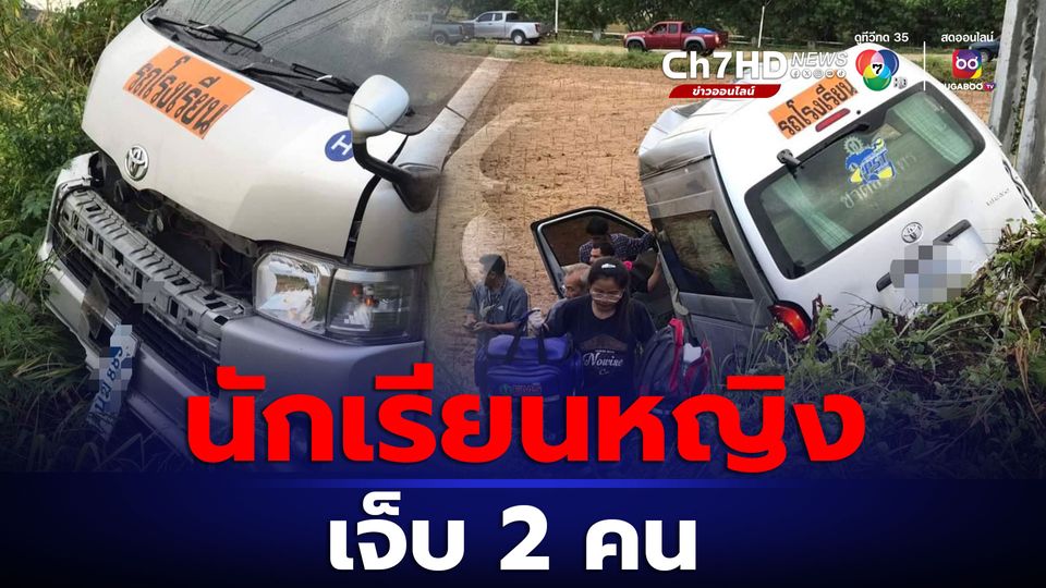 เกิดอุบัติเหตุรถตู้รับส่งรักเรียน เสียหลักลงข้างทางชนเสาไฟฟ้า มีนักเรียนได้รับบาดเจ็บ 2 คน คาดสาเหตุเพราะถนนลื่นหลังฝนตก