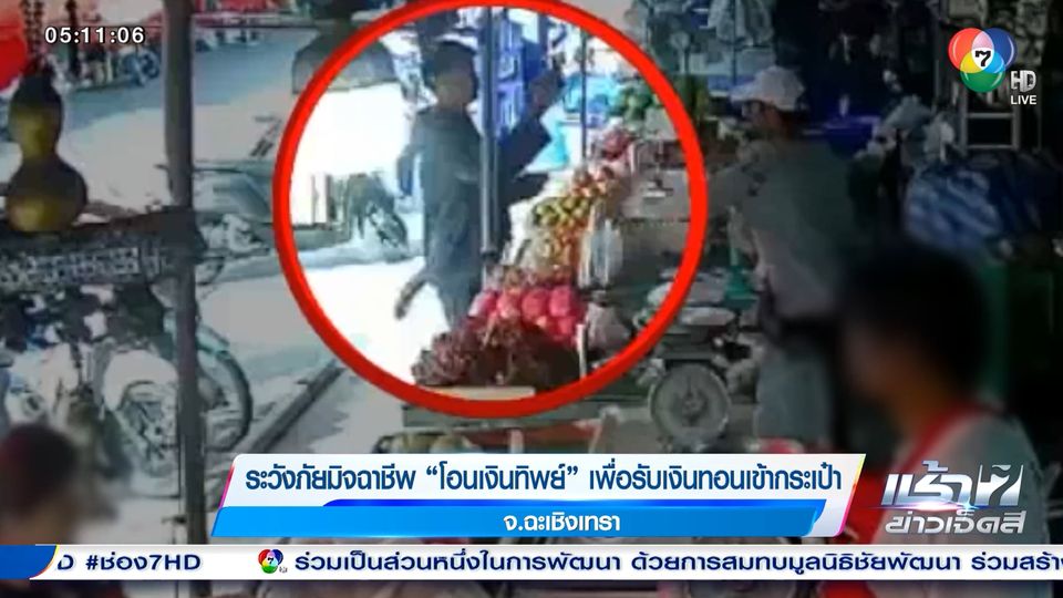 เช้าข่าว 7 สี - "ธันวาคม" เดือนแห่งการจับจ่ายเพื่อเฉลิมฉลอง สมัยนี้การโอนเงินผ่านแอปฯ ธนาคาร เพื่อจ่ายค่าสินค้าเป็นเรื่องธรรมดา ผู้ค้าผลไม้ที่จังหวัดฉะเชิงเทรา เตือนระวังภัยมิจฉาชีพ หลังถูกตีเนียนโชว์สลิปปลอม ซ้ำร้ายยังถูกหลอกเอาเงินทอนไปอีก