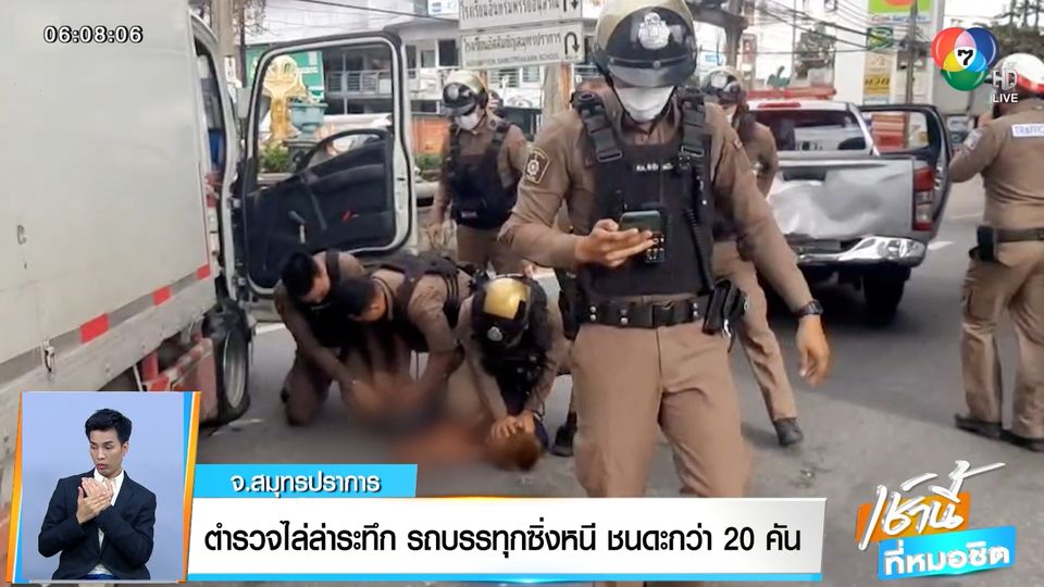 เช้านี้ที่หมอชิต - ไล่ล่าระทึก กลางเมืองสมุทรปราการ หนุ่มซิ่งรถบรรทุกหนีด่าน ตำรวจยิงยางสกัด แต่คนขับไม่ยอมหยุด ขับรถพุ่งชนดะกว่า 20 คัน ไปชมภาพเหตุการณ์กัน